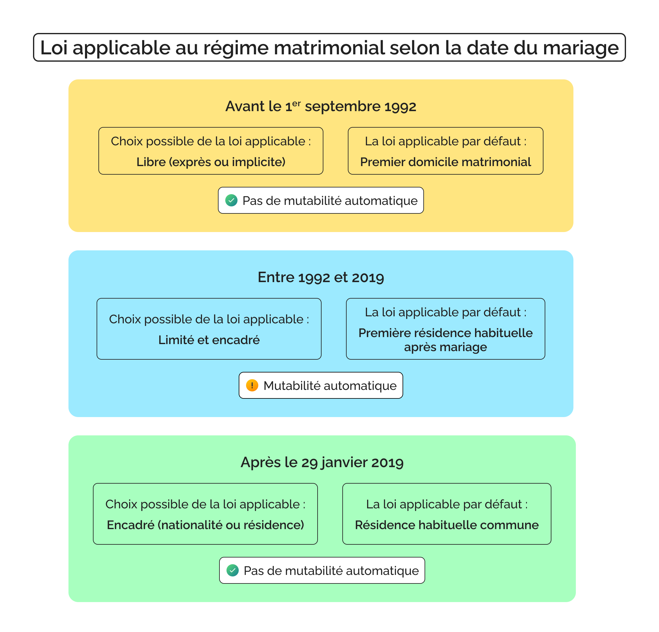 | Date du mariage | Texte applicable | Principes clés |